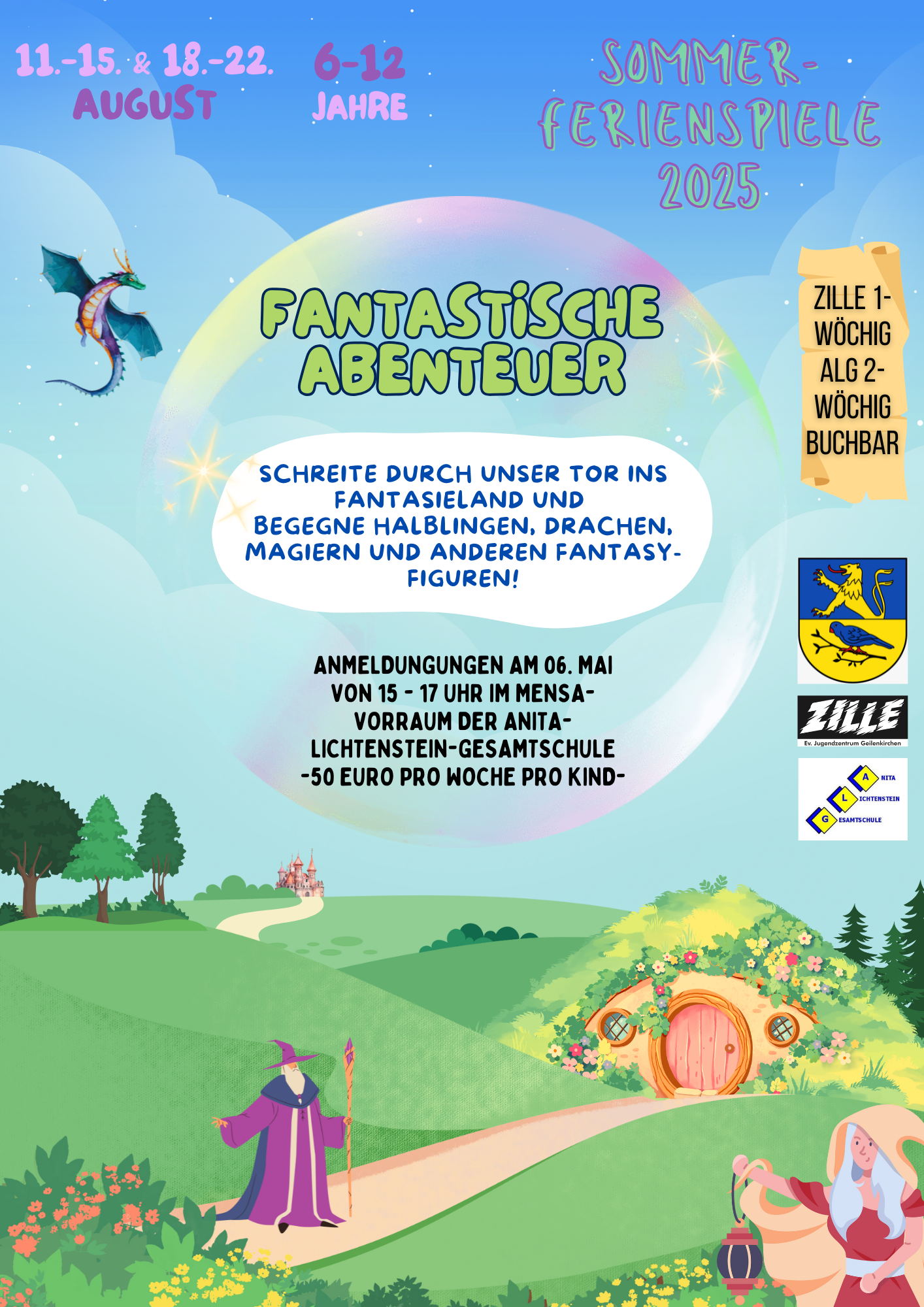"Fantastische Abenteuer" Städt. Ferienspiele in Kooperation mit dem Jugendzentrum Zille und der Anita-Lichtenstein-Gesamtschule Datum: 11. - 15. August & 18. - 22. August Ort: Ev. Jugendzentrum Zille & Anita-Lichtenstein-Gesamtschule